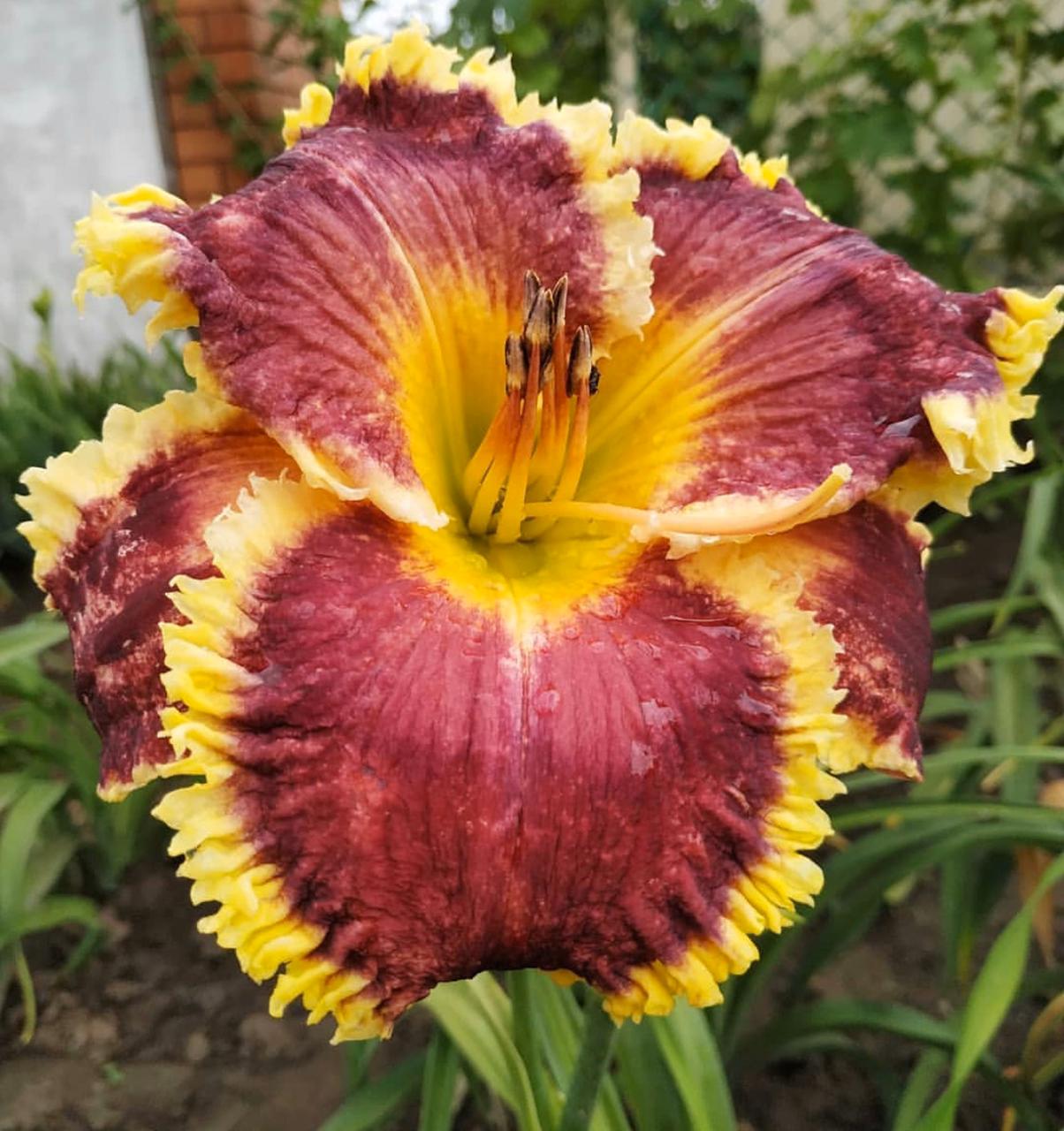 Сорт обладает насыщенным фиолетовым цветом и очень красивой золотой гофрировкой. Вокруг зелёного горла серебристое хало. Цветки крупные -16,5 см, метровые цветоносы и хорошее ветвление. Форма цветков очень округлая с широкими лепестками, плотная структура и бархатное покрытие. Зимостойкость: -40°С.
